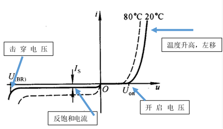 普通二極管,主要是利用它正向導通,反向截止的特性(單向導電性)。伏安特性曲線見圖(2)